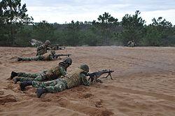 The Portuguese Marine Corps (Portuguese: Corpo de Fuzileiros, meaning literally "Corps of Fusiliers") are an elite infantry and special forces unit of the Portuguese Navy, It has similar roles to the American Marine Recon and Royal Marine Commandos. The Corps is specialised in amphibious warfare, coastal reconnaissance, unconventional warfare, guerrilla warfare, raids, maritime interdiction and boarding operations. It is an elite light infantry force, operating as a rapid-reaction force.