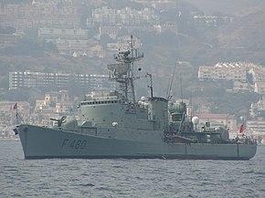 | Baptista de Andrade-class | Corvette | NRP João Roby (F487) | 1975 | Displacement: 1380 t Length: 85 m Speed: 23 kn Range: 4 000 NM Complement: 71 |