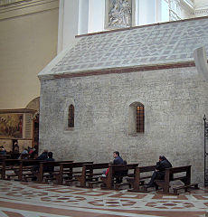 The chapel was located on a small portion of land ("Portiuncula") belonging to the Order of Saint Benedict of Monte Subasio. Later, the name of the land passed to the little church itself.[2] It was in bad condition, lying abandoned in a wood of oak trees.