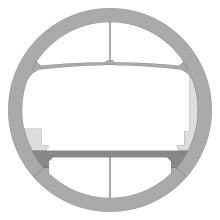 Each of the Webster segments were of comparable size and configuration to the earlier Posey tube segments, measuring 200 feet (61 m) long and 37 feet (11 m) in diameter, with walls 2 1&fras1;2 feet (0.76 m) thick.[35] However, the Webster segments were equipped with rectangular collars 45 ft × 43 ft (14 m × 13 m) (W×H) at each end, and weighed more, approximately 5,700 short tons (5,200 t) each.[39] The roadway within the Webster tube is 24 feet (7.3 m) wide, and the minimum vertical clearance is 15 ft 1 3&fras1;8 in (4.607 m).[35] Including approaches, the Webster Street tube is 5,923 feet (1,805 m) long,[38] of which 3,350 feet (1,020 m) are underwater.[40]