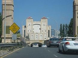 By 1916, the War Department had declared the replacement Webster and Harrison bridges[13] were a menace to deep-water navigation and an obstacle to continued development of Oakland Harbor in 1916.[14] As an example, SS Lancaster rammed the Webster Street bridge in January 1926, causing the swing section to fall into the Estuary and forcing road traffic to be rerouted.[15][16] After the completion of the Posey tube, the Webster Street bridge was sold to Sacramento County for US$3,100 (equivalent to $50,000 in 2019) in November 1928.[17]