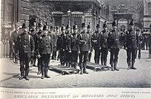 In 1902 the 24th Middlesex (Post office) was one of six rifle corps to form the 4th or City of London Brigade, a volunteer infantry brigade.[4]