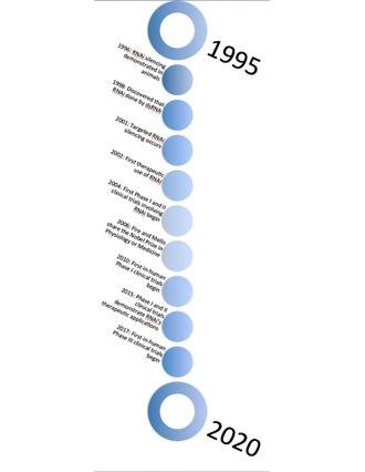 The first instance of RNA silencing in animals was documented in 1996, when Guo and Kemphues observed that, by introducing sense and antisense RNA to par-1 mRNA in Caenorhabditis elegans caused degradation of the par-1 message.[128] It was thought that this degradation was triggered by single-stranded RNA (ssRNA), but two years later, in 1998, Fire and Mello discovered that this ability to silence the par-1 gene expression was actually triggered by double-stranded RNA (dsRNA).[128] They would eventually share the Nobel Prize in Physiology or Medicine for this discovery.[129] Just after Fire and Mello's ground-breaking discovery, Elbashir et al. discovered, by using synthetically made small interfering RNA (siRNA), it was possible to target the silencing of specific sequences in a gene, rather than silencing the entire gene.[130] Only a year later, McCaffrey and colleagues demonstrated that this sequence-specific silencing had therapeutic applications by targeting a sequence from the Hepatitis C virus in transgenic mice.[131] Since then, multiple researchers have been attempting to expand the therapeutic applications of RNAi, specifically looking to target genes that cause various types of cancer.[132][133] By 2006, the first applications to reach clinical trials were in the treatment of macular degeneration and respiratory syncytial virus.[134] Four years later the first-in-human Phase I clinical trial was started, using a nanoparticle delivery system to target solid tumors.[135] Although most research is currently looking into the applications of RNAi in cancer treatment, the list of possible applications is extensive. RNAi could potentially be used to treat viruses,[136] bacterial diseases,[137] parasites,[138] maladaptive genetic mutations,[139] control drug consumption,[140] provide pain relief,[141] and even modulate sleep.[142]