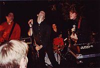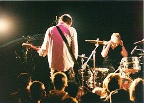 During the early to mid-1980s, the desire to experiment with hardcore's basic template expanded to many musicians that had been associated with the genre or had strong roots in it.[3] Many of these groups also took inspiration from the 1980s noise rock scene pioneered by Sonic Youth.[5] Some bands signed to the independent label Homestead Records, including Squirrel Bait[12] (as well as David Grubbs-related Bastro and Bitch Magnet[13]) and Steve Albini's Big Black (just as his subsequent projects Rapeman[8] and Shellac[8][14]) are also associated with post-hardcore.[5][9] Big Black, which also featured former Naked Raygun guitarist Santiago Durango,[15] made themselves known for their strict DIY ethic,[5] related to practices such as paying for their own recordings, booking their own shows, handling their own management and publicity, and remaining "stubbornly independent at a time when many independent bands were eagerly reaching out for the major-label brass ring".[15] The band's music, punctuated by the use of a drum machine, has also been seen as influential to industrial rock,[15] while Blush has also described the Albini-fronted project as "an angst-ridden response to the rigid English post-punk of Gang of Four".[11] After the issuing of the "Il Duce" single (and between the release of their only two studio albums, Atomizer and Songs About Fucking), Big Black left Homestead for Touch and Go Records,[15] which would later reissue not only their entire discography, but would also be responsible for the release of the complete works of Scratch Acid, an act from Austin, Texas described as post-hardcore,[16] that, according to Stephen Thomas Erlewine, "laid the groundwork for much of the distorted, grinding alternative punk rockers of the '90s".[16]