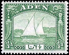 In 1937, the Settlement was detached from India and became the Colony of Aden, a British Crown colony. The new colony received a series of twelve definitive stamps depicting a dhow, produced by De La Rue & Co.