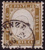 Perforated stamps of the fourth standard edition of the Sardinian kingdom with an embossed profile of Victor Emmanuel II were issued in 1862. Starting on 1 January 1863, uniform postal rates went into effect.
