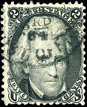 A 2¢ stamp in black featuring Andrew Jackson was issued in 1863 and is now known to collectors as the "Black Jack". A black 15¢ stamp depicting the recently assassinated Abraham Lincoln was issued in 1866, and is generally considered part of the same series. While it was not officially described as such, and the 15¢ value was chosen to cover newly established fee for registered letters, many philatelists consider this to be the first memorial stamp ever issued.
