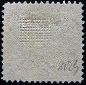 The Post Office eventually adopted the grill, a device consisting of a pattern of tiny pyramidal bumps that would emboss the stamp, breaking up the fibers so that the ink would soak in more deeply, and thus be difficult to clean off. While the patent survives (No. 70,147), much of the actual process of grilling was not well documented, and there has been considerable research trying to recreate what happened and when. Study of the stamps shows that there were eleven types of grill in use, distinguished by size and shape (philatelists have labeled them with letters A-J and Z), and that the practice started some time in 1867 and was gradually abandoned after 1871. A number of grilled stamps are among the great rarities of US philately. The United States 1¢ Z grill was long thought to be the rarest of all U.S. stamps, with only two known to exist. In 1961, however, it was discovered that the 15¢ stamp of the same series also existed in a Z grill version; this stamp is just as rare as the 1¢, for only two examples of the 15¢ Z grill are known.[25] Rarer still may be the 30¢ stamp with the I Grill, the existence of which was discovered only recently: as of October 2011, only one copy is known.[26]