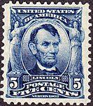 Toward the beginning of the Washington-Franklin era, in 1909, the Post Office issued its first individual commemorative stamps—three single 2¢ issues honoring, respectively, the Lincoln Centennial, the Alaska-Yukon Exposition, and the tercentennial/centennial Hudson-Fulton Celebration in New York.[35] A four-stamp series commemorating the Panama–Pacific International Exposition in San Francisco, California appeared in 1913,[36] but no further commemoratives were issued until after World War I. The Lincoln Centennial's portrait format distinguished it from all other commemoratives released between 1893 and 1926, which were produced exclusively in landscape format. (The next U. S. commemorative in portrait orientation would be the Vermont Sesquicentennial issue of 1927, and many have appeared since.)