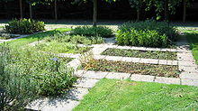 One historical design precedent is from the Gardens of the French Renaissance and Baroque Garden à la française eras potagers. In this type of vegetable garden, flowers (edible and non-edible) and herbs are often planted with the vegetables to enhance the garden's beauty.[3] The goal is to make the function of providing food aesthetically pleasing.