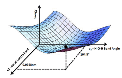 It is helpful to use the analogy of a landscape: for a system with two degrees of freedom (e.g. two bond lengths), the value of the energy (analogy: the height of the land) is a function of two bond lengths (analogy: the coordinates of the position on the ground).[1]