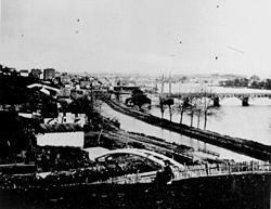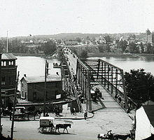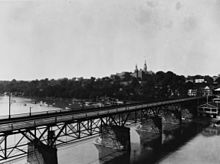 The safety of the bridge was quickly called into question. In December 1885, just a year after the bridge was purchased, the United States Army Corps of Engineers conducted a study that found the wooden bridge so unsafe that it should be removed.[13] Again, cost considerations came to the fore. Legislation was introduced in Congress in May 1886 to have a new bridge built, with the D.C. government picking up half the cost.[14] A D.C. engineering study of the bridge was conducted in September 1886 to again determine the bridge's safety. This report for the bridge so unsafe that it recommended immediate closure.[15] The District government did so on October 5, 1886.[16]