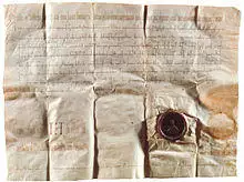 The area around Potsdam shows signs of occupancy since the Bronze Age and was part of Magna Germania as described by Tacitus. After the great migrations of the Germanic peoples, Slavs moved in and Potsdam was probably founded after the 7th century as a settlement of the Hevelli tribe centred on a castle. It was first mentioned in a document in 993 as Poztupimi, when Emperor Otto III gifted the territory to the Quedlinburg Abbey, then led by his aunt Matilda.[10] By 1317, it was mentioned as a small town. It gained its town charter in 1345. In 1573, it was still a small market town of 2,000 inhabitants.