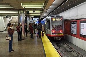 ![]() An outbound Muni Metro train at Powell station in 2017 | |||||||||||||||||||||||||||||||||||||||||||||||||||||||||||||||