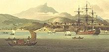 Due to its strategic position on a plateau it had better protection against pirate attacks, which gave it a large advantage over the older city of Ribeira Grande (Cidade Velha). It gradually superseded Cidade Velha to become the most important settlement of Cape Verde, and became the capital of Cape Verde in 1770.[4] The naval battle of Porto Praya took place at Praia Harbour on 16 April 1781, as Portugal was neutral, it involved Great Britain and France and ended in a tactical draw and French strategic victory. Praia was the first stop of Charles Darwin's voyage with HMS Beagle in 1832.[5]