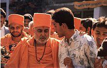 Pramukh Swami Maharaj (born Shantilal Patel; ordained Narayanswarupdas Swami; 7 December 1921 – 13 August 2016) was the guru and Pramukh, or president, of the Bochasanwasi Akshar Purushottam Swaminarayan Sanstha (BAPS), a major branch of the Swaminarayan Sampradaya, a Hindu denomination. BAPS regards him as the fifth spiritual successor of Swaminarayan, following Gunatitanand Swami, Bhagatji Maharaj, Shastriji Maharaj, and Yogiji Maharaj. He was believed by his followers to be in constant communion with Swaminarayan, and ontologically, the manifestation of Akshar, the eternal abode of Swaminarayan.[1]
