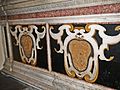 The chapels can be accessed through a 17th-century balustrade in polychrome marble, for which parts of the Renaissance choir were re-used (including crests and cherubims).