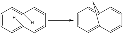 Transannular strain can be eliminated by the simple addition of a carbon bridge. E,Z,E,Z,Z-[10]-annulene is quite unstable; while it has the requisite number of π-electrons to be aromatic, they are for the most part isolated. Ultimately, the molecule itself is very difficult to observe. However, by the simple addition of a methylene bridge between the 1 and 6 positions, a stable, flat, aromatic molecule can be made and observed.[8]