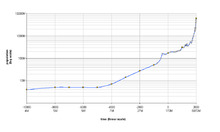 World population, 10,000 BCE – 2,000 CE (vertical population scale is logarithmic)[1]