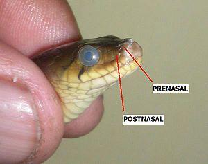 Sometimes this scale is paired (divided). In such cases, the anterior half is referred to as the prenasal and the posterior half is referred to as the postnasal.[2]