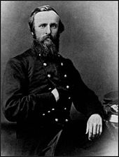The men were unhappy to learn that, unlike Ohio's earlier volunteer regiments, they would not be permitted to elect their officers; these would be designated by Ohio's governor, William Dennison.[12] Dennison appointed Colonel William Rosecrans as the commander of the regiment, and the men began training on the outskirts of Columbus.[12] McKinley quickly took to the soldier's life: he wrote a series of letters to his hometown newspaper extolling the army and the Union cause.[13] Delays in issuance of uniforms and weapons again brought the men into conflict with their officers, but Major Rutherford B. Hayes convinced them to accept what the government had issued them; his style in dealing with the men impressed McKinley, beginning an association and friendship that would last until Hayes's death in 1893.[14]