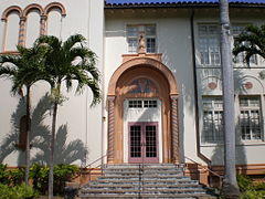 The architect most involved in the early layout of the King Street campus and design of its Spanish Colonial Revival buildings was Louis E. Davis. The original quadrangle was placed on the National Register of Historic Places in 1980.[13]