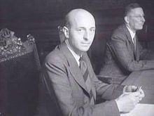 The present Commission was established by the Treaty of Rome in 1957; it also replaced the High Authority and the Commission of Euratom in 1967.[6] The Commission's first president was Walter Hallstein (see Hallstein Commission) who started consolidating European law and began to impact on national legislation. National governments at first took little heed of his administration, with the president having to stamp the Commission's authority early on. With the aid of the European Court of Justice, the Commission began to be taken more seriously.[7]