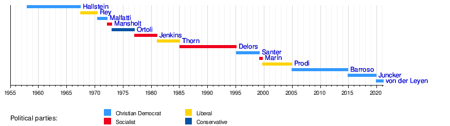 | 1 | Walter Hallstein (1901–1982) | 1 January 1958 | 5 July 1967 | Hallstein | CDU | Christian Democrats | – | [77] | |||
