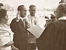 - ^ The four vice presidents who succeeded to the presidency upon their predecessor's death or resignation and finished-out that unexpired term are: Sergio Osmeña (1944); Elpidio Quirino (1948); Carlos P. Garcia (1957); Gloria Macapagal Arroyo (2001).