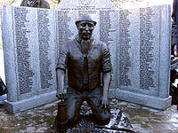 There is a memorial to the victims in Westhoughton cemetery. A memorial service is held there each year and a selection of artifacts from the disaster is displayed in Westhoughton Central Library.[4] A statue opposite Westhoughton church by Jane Robbins was unveiled on 19 December 2010 almost 100 years after the disaster. Another memorial was erected in 2010 on the 100th anniversary at the end of Broadway on the border between Atherton and Over Hulton funded from by grants and donations. The site is about 300 yards from the No.4 shaft from which the survivors and bodies were raised.
