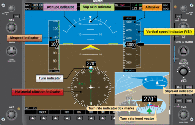 Although the layout of a PFD can be very complex, once a pilot is accustomed to it the PFD can provide an enormous amount of information with a single glance.