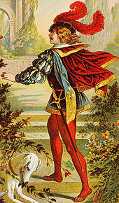 In the 17th century, Madame d'Aulnoy wrote two fairy tales, The Story of Pretty Goldilocks, where the hero was named Avenant ("Fine", "Beautiful", in French), and The Blue Bird, where the hero was Le roi Charmant ("The Charming King"). When Andrew Lang retold the first (in 1889) for The Blue Fairy Book,[3] he rendered the hero's name as "Charming"; the second, for The Green Fairy Book, as "King Charming". Although neither one was a prince and the first was not royal, this may have been the original use of "Charming".[4]