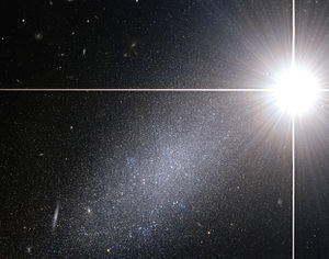 PGC 39058 is a dwarf galaxy which is located approximately 14 million light-years away in the constellation of Draco. It is relatively nearby, however it is obscured by a bright star which is in front of the galaxy.
