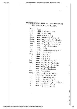 - A 54-page introduction by Russell describing the changes they would have made had they had more time and energy. The main change he suggests is the removal of the controversial axiom of reducibility, though he admits that he knows no satisfactory substitute for it. He also seems more favorable to the idea that a function should be determined by its values (as is usual in current mathematical practice).