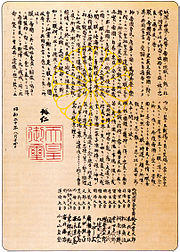 The history of the Privy Seal of Japan dates back to the Nara period. Although it was originally made from copper, it was manufactured from stone in 1868 (Meiji) and later, was made from pure gold.