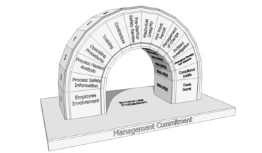 The process safety management system program is divided into 14 elements. The U.S. Occupational Safety and Health Administration (OSHA) 1910.119 define all 14 elements of the process safety management system plan.