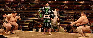 Wrestlers in this division are forbidden from wearing overcoats over their thin cotton yukata, even in winter, and must wear geta on their feet. They often also pick up many of the more mundane chores within the training stable in which they live.