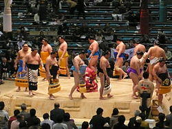 Jūryō wrestlers, along with their makuuchi counterparts, are the only professional sumo wrestlers who compete in a full fifteen bouts per official tournament. In the case of injuries with makuuchi wrestlers pulling out, jūryō wrestlers near the top of the division may find themselves in the occasional matchup with a top-division wrestler. Such jūryō-makuuchi matchups are also not uncommon towards the end of a sumo tournament, in order to better establish promotion and relegation of individuals between the two divisions.