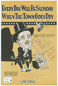 Prohibition was an important force in state and local politics from the 1840s through the 1930s. Numerous historical studies demonstrated that the political forces involved were ethnoreligious.[29] Prohibition was supported by the dries, primarily pietistic Protestant denominations that included Methodists, Northern Baptists, Southern Baptists, New School Presbyterians, Disciples of Christ, Congregationalists, Quakers, and Scandinavian Lutherans, but also included the Catholic Total Abstinence Union of America and, to a certain extent, the Latter-day Saints. These religious groups identified saloons as politically corrupt and drinking as a personal sin. Other active organizations included the Women's Church Federation, the Women's Temperance Crusade, and the Department of Scientific Temperance Instruction. They were opposed by the wets, primarily liturgical Protestants (Episcopalians and German Lutherans) and Roman Catholics, who denounced the idea that the government should define morality.[30] Even in the wet stronghold of New York City there was an active prohibition movement, led by Norwegian church groups and African-American labor activists who believed that prohibition would benefit workers, especially African Americans. Tea merchants and soda fountain manufacturers generally supported prohibition, believing a ban on alcohol would increase sales of their products.[31] A particularly effective operator on the political front was Wayne Wheeler of the Anti-Saloon League, who made Prohibition a wedge issue and succeeded in getting many pro-prohibition candidates elected. Coming from Ohio, his deep resentment for alcohol started at a young age. He was injured on a farm by a worker who had been drunk. This event transformed Wheeler. Starting low in the ranks, he quickly moved up due to his deep rooted hatred of alcohol. He later realized to further the movement he would need more public approval, and fast. This was the start of his policy called 'wheerlism' where he used the media to make it seem like the general public was "on in" on a specific issue. Wheeler became known as the "dry boss" because of his influence and power.[32]