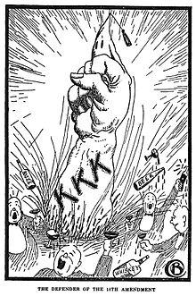 Two other amendments to the Constitution were championed by dry crusaders to help their cause. One was granted in the Sixteenth Amendment (1913), which replaced alcohol taxes that funded the federal government with a federal income tax.[36] The other was women's suffrage, which was granted after the passage of the Nineteenth Amendment in 1920; since women tended to support prohibition, temperance organizations tended to support women's suffrage.[36]
