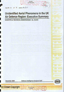 - ^ ”Unidentified Aerial Phenomena in the UK Air Defence Region: Executive Summary”, Defence Intelligence Staff (2000), Pages 9-10