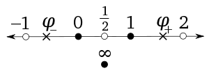 - ^ In projective coordinates, the points {0, 1, ∞} are given by [0:1], [1:1], and [1:0], which explains why their stabilizer is represented by integral matrices.