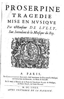 Proserpine (Proserpina) is an opera with music by Jean-Baptiste Lully and a libretto by Philippe Quinault first performed at Saint-Germain-en-Laye on 3 February 1680.[1]