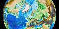 Laurasia (centre) and Gondwana (bottom) as part of Pangaea 200 Mya (Early Jurassic) | |