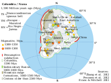 Several earlier supercontinents proposed and debated in the 1990s and later (e.g. Rodinia, Nuna, Nena) included earlier connections between Laurentia, Baltica, and Siberia.[5] These original connections apparently survived through one and possibly even two Wilson Cycles, though their intermittent duration and recurrent fit is debated.[7]