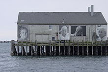 Immediately parallel to MacMillan Pier is Fisherman's Wharf, also known to locals as Cabral's Pier.[29] They Also Faced the Sea is an outdoor art installation of five large portraits of local Portuguese-American women photographed by Norma Holt hanging since 2003 on one side and one end of the old fish-packing plant on Cabral Pier.[30]