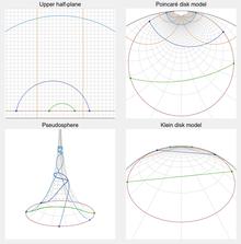 Beltrami, Eugenio (1869). "Essai d'interprétation de la géométrie noneuclidéenne" [Treatise on the interpretation of non-Euclidean geometry]. Annales de l'École Normale Supérieure (in French). 6: 251–288. Archived from the original on 2016-02-02. Retrieved 2010-07-24.) - ^ Bonahon, Francis (2009). Low-dimensional geometry: from Euclidean surfaces to hyperbolic knots. AMS Bookstore. p. 108. ISBN 0-8218-4816-X., Chapter 5, page 108