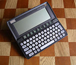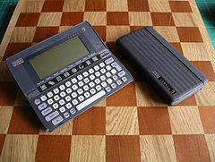 Essentially a rebadged OEM version of the Series 3 with slightly different on-board software, the Acorn Pocket Book was marketed by Acorn Computers as an inexpensive computer for schoolchildren, rather than as an executive tool.[6] The hardware was the same as the Series 3, but the integrated applications were different; for instance, the Pocket Book omitted the Agenda diary application, which became an optional install from floppy diskette. Other programs were renamed: 'System' became 'Desktop', 'Word' became 'Write', 'Sheet' became 'Abacus' and 'Data' became 'Cards'.[7]