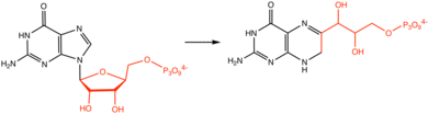 - ^ J. Rebelo, G. Auerbach, G Bader, A. Bracher, H. Nar, C. Hösl, N. Schramek, J. Kaiser, A. Bacher, R. Huber, M. Fischer (2003). "Biosynthesis of Pteridines. Reaction Mechanism of GTP Cyclohydrolase I". Journal of Molecular Biology. 326 (2): 503–516. doi:10.1016/S0022-2836(02)01303-7. PMID 12559918.