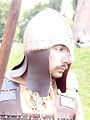 Pteruges of leather on the back of a reconstruction of a Byzantine helmet